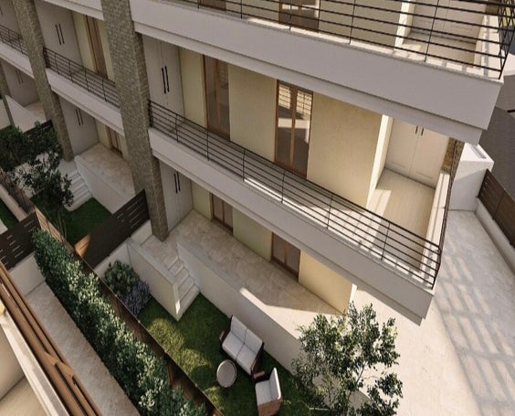 Gli appartamenti sono composti al primo piano da un luminoso soggiorno con angolo cottura, due camera da letto, disimpegno e due bagni.
